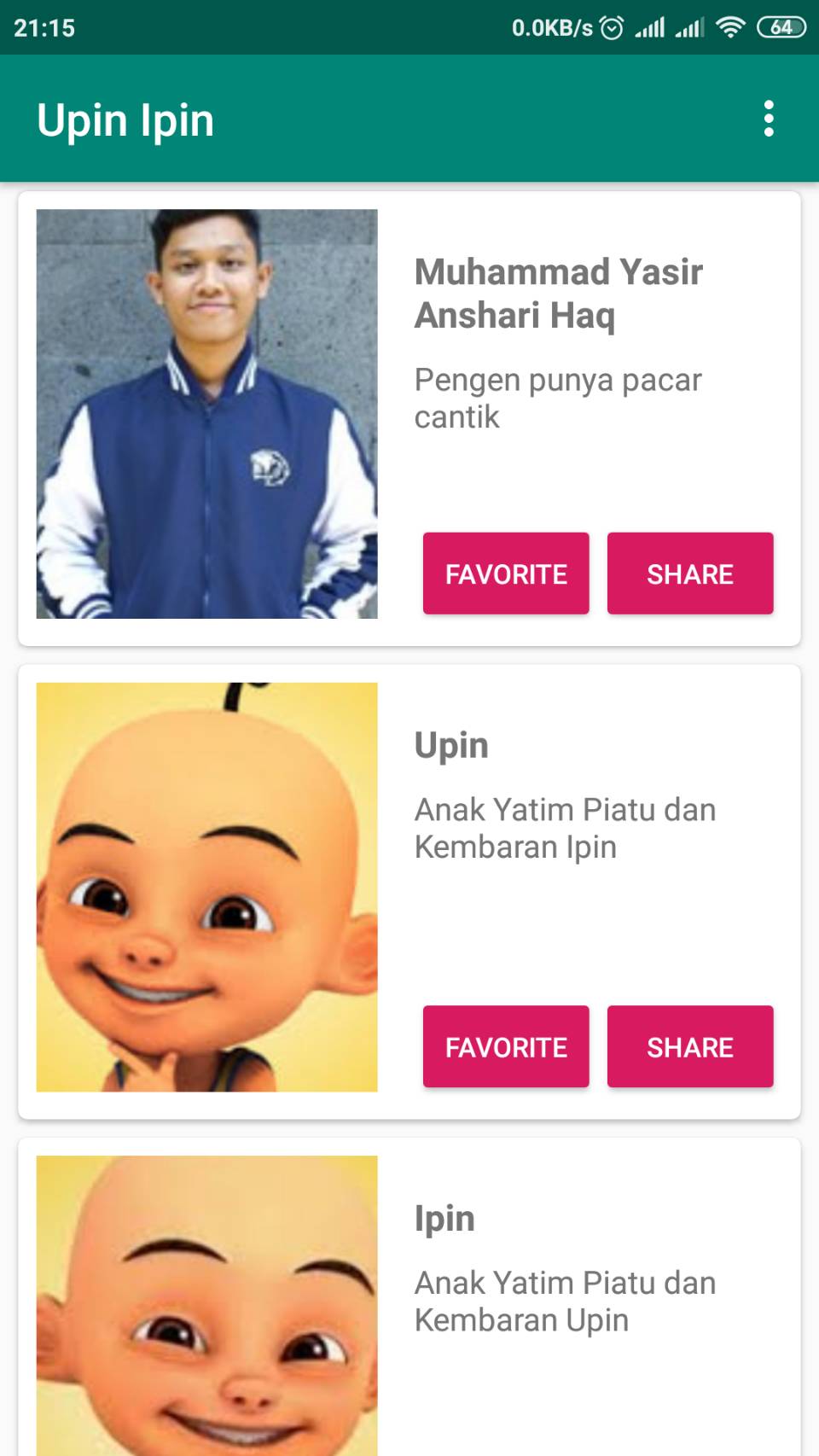 Upin Ipin Apps for fun only. Created using RecyclerView (List View, Grid View and Card View).
